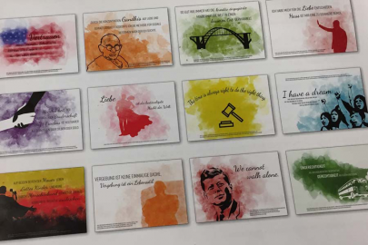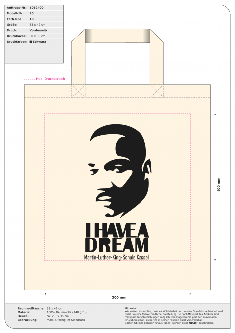 Martin Luther King, der Namensgeber unserer Schule, hätte am 15. Januar 2019 sein 90. Geburtstag gefeiert. Das dritte Ausbildungsjahr der Medienkaufleute Digital und Print hat sich im Unterricht in den Fächern „Politik“ und „Medienwerkstatt“ dem Leben und Wirken von Martin Luther King intensiv angenommen und seine Botschaften in geniale Souvenirs umgesetzt: stylische Postkarten, stabile Jutebeutel, berührende Kalender, großformatige Poster, Kartenspiele, edle Isolierbecher und inspirierende „Traumfänger“-Tagebücher.