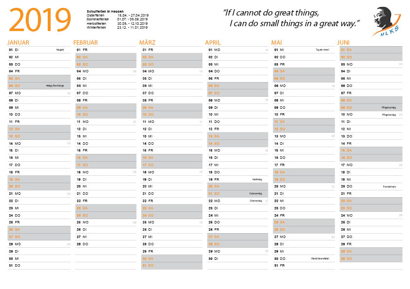 An alle Schüler*innen und Lehrer*innen der MLKS wurde der praktische Jahresplaner verschenkt. Andere stehen zum Verkauf – bitte fragen Sie im Sekretariat. Der Reinerlös kommt gemeinnützigen Zwecke zu Gute. Unserer besonderer Dank für ihre Unterstützung geht an der Verlag Dierichs GmbH & Co. KG sowie den Förderverein der MLKS.